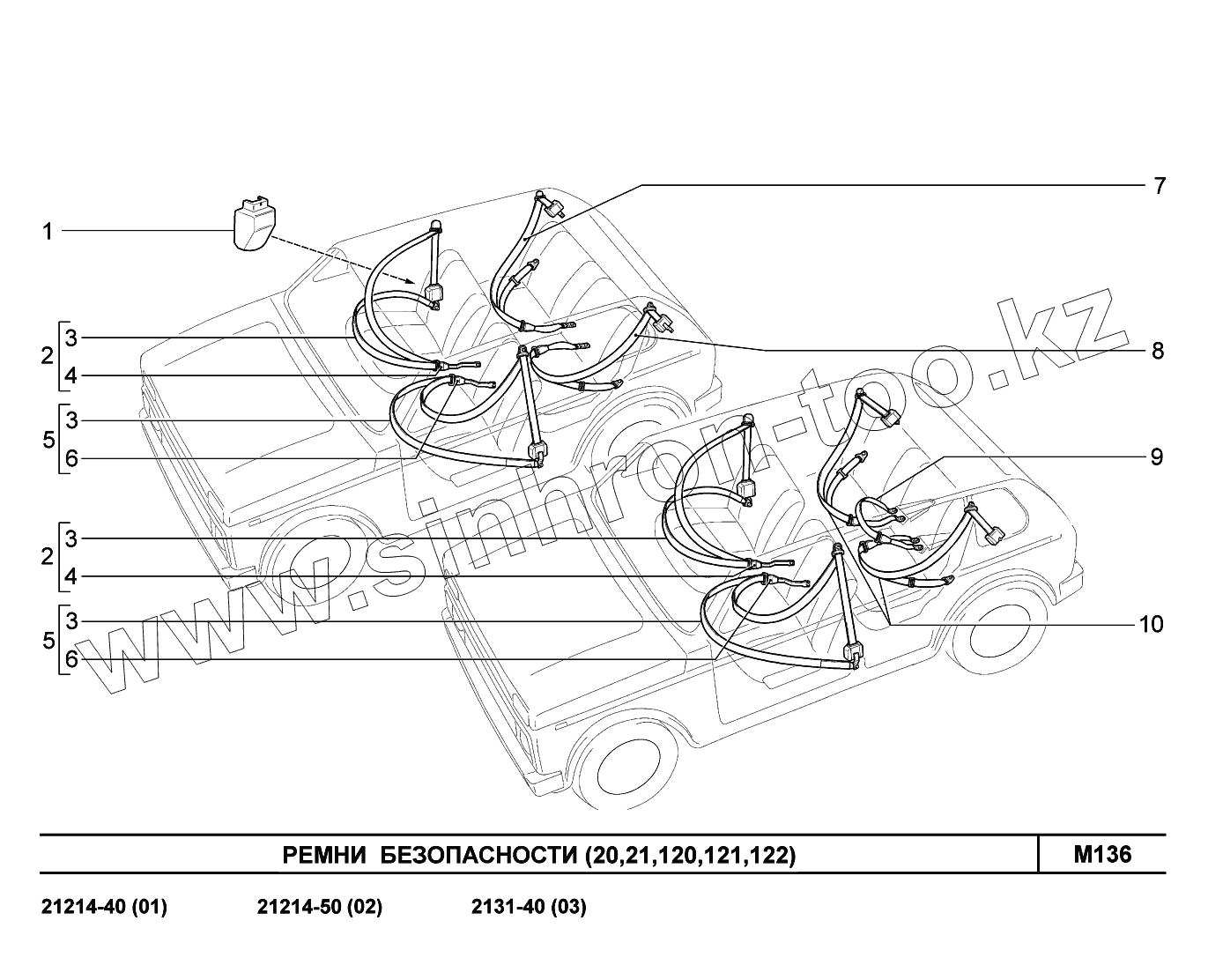 Каталог запасных частей к технике: ВАЗ LADA 4x4. M136. Ремни безопасности