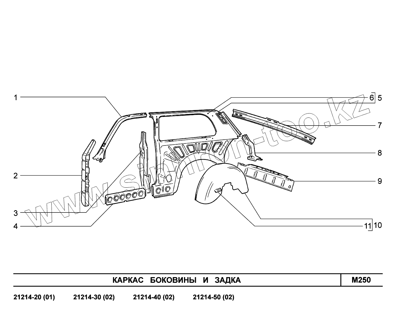 Каталог запасных частей к технике: ВАЗ LADA 4x4. M250. Каркас боковины и задка