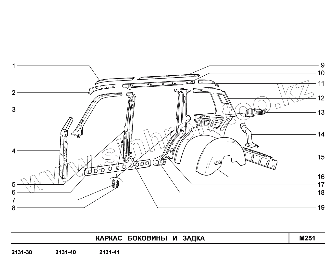 Каталог запасных частей к технике: ВАЗ LADA 4x4. M251. Каркас боковины и задка