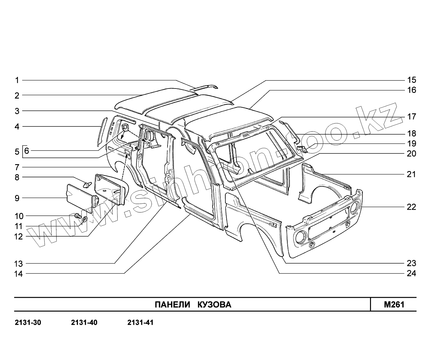 Каталог запасных частей к технике: ВАЗ LADA 4x4. M261. Панели кузова