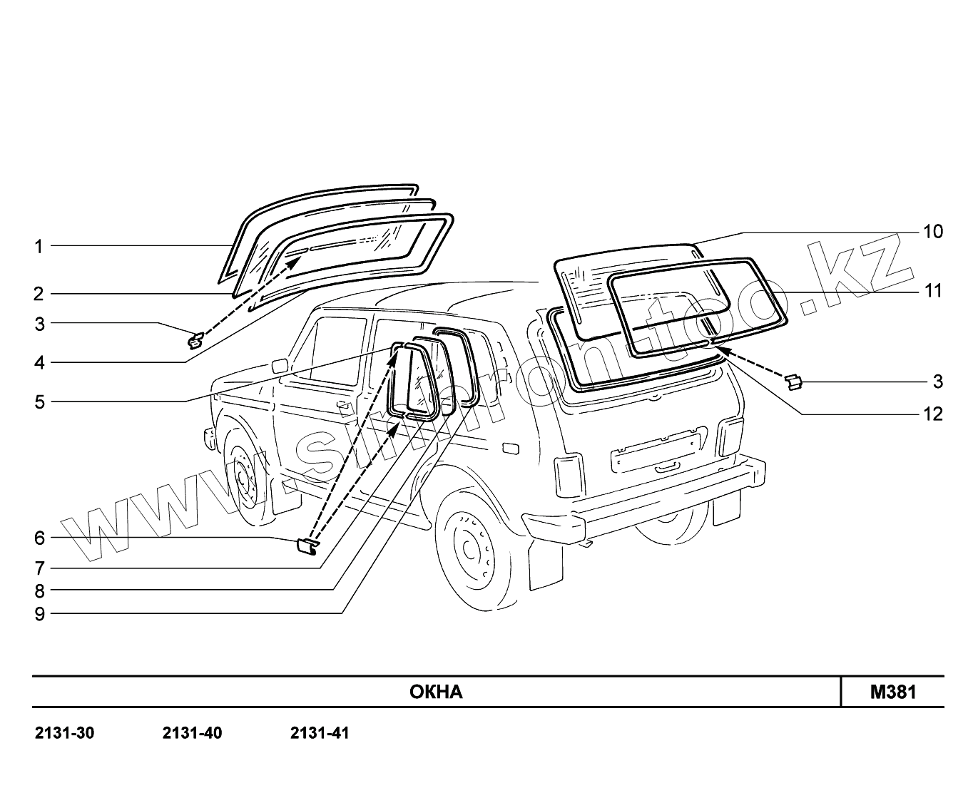 Каталог запасных частей к технике: ВАЗ LADA 4x4. M381. Окна