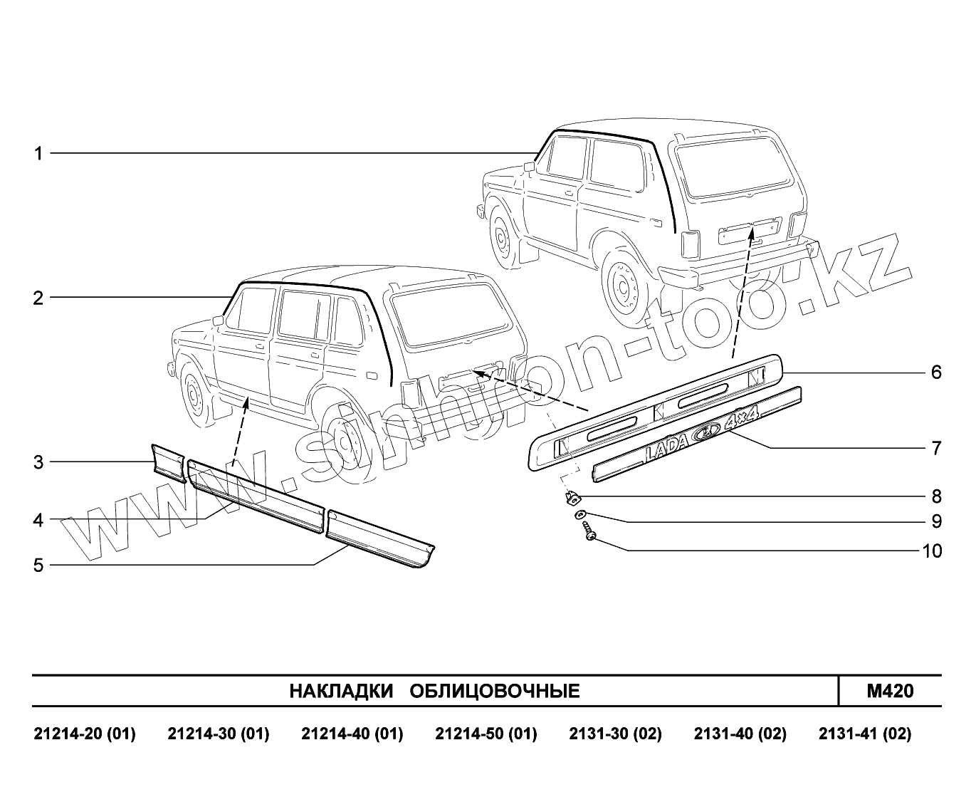 Каталог запасных частей к технике: ВАЗ LADA 4x4. M420. Накладки облицовочные