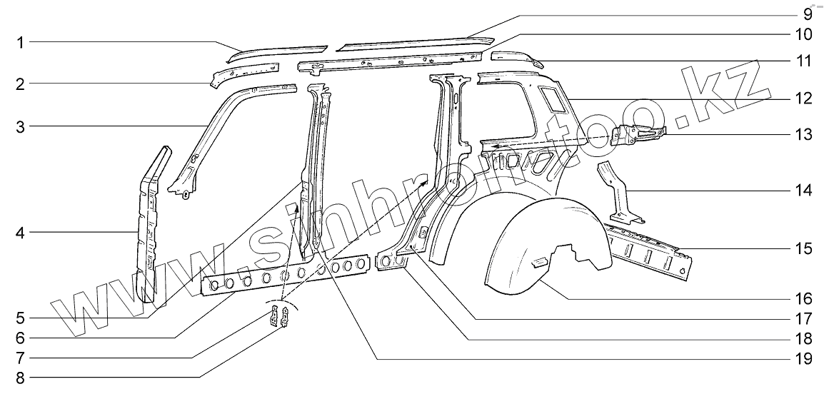 Каталог запасных частей к технике: ВАЗ LADA 4x4 M. Каркас боковины и задка