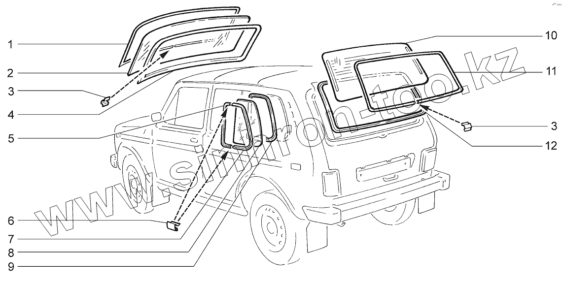 Каталог запасных частей к технике: ВАЗ LADA 4x4 M. Окна