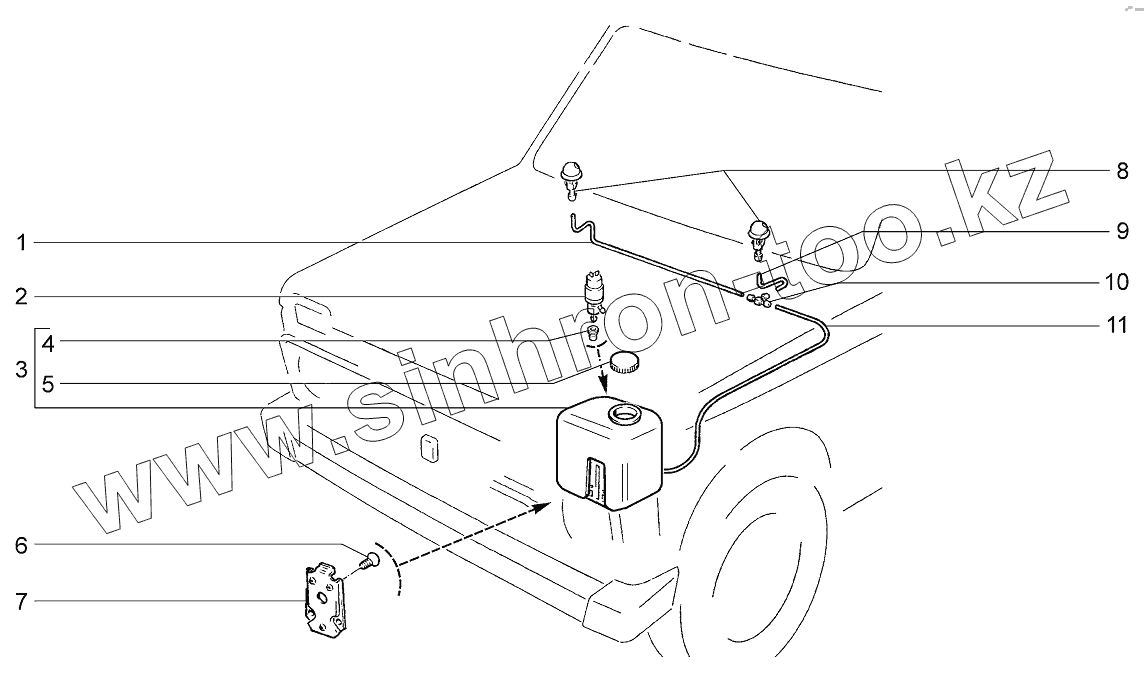 Каталог запасных частей к технике: ВАЗ LADA 4x4 M. Омыватель ветрового стекла