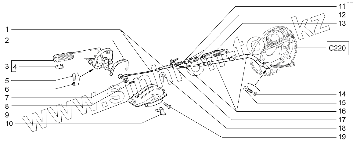 Каталог запасных частей к технике: ВАЗ LADA 4x4 M. Привод стояночного тормоза