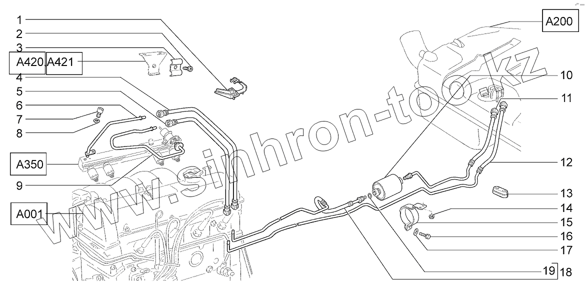 Каталог запасных частей к технике: ВАЗ LADA 4x4 M. Трубопроводы топливные