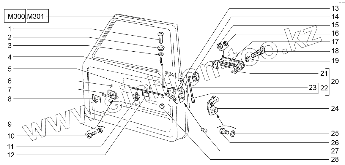 Каталог запасных частей к технике: ВАЗ LADA 4x4 M. Замки и ручки передних дверей