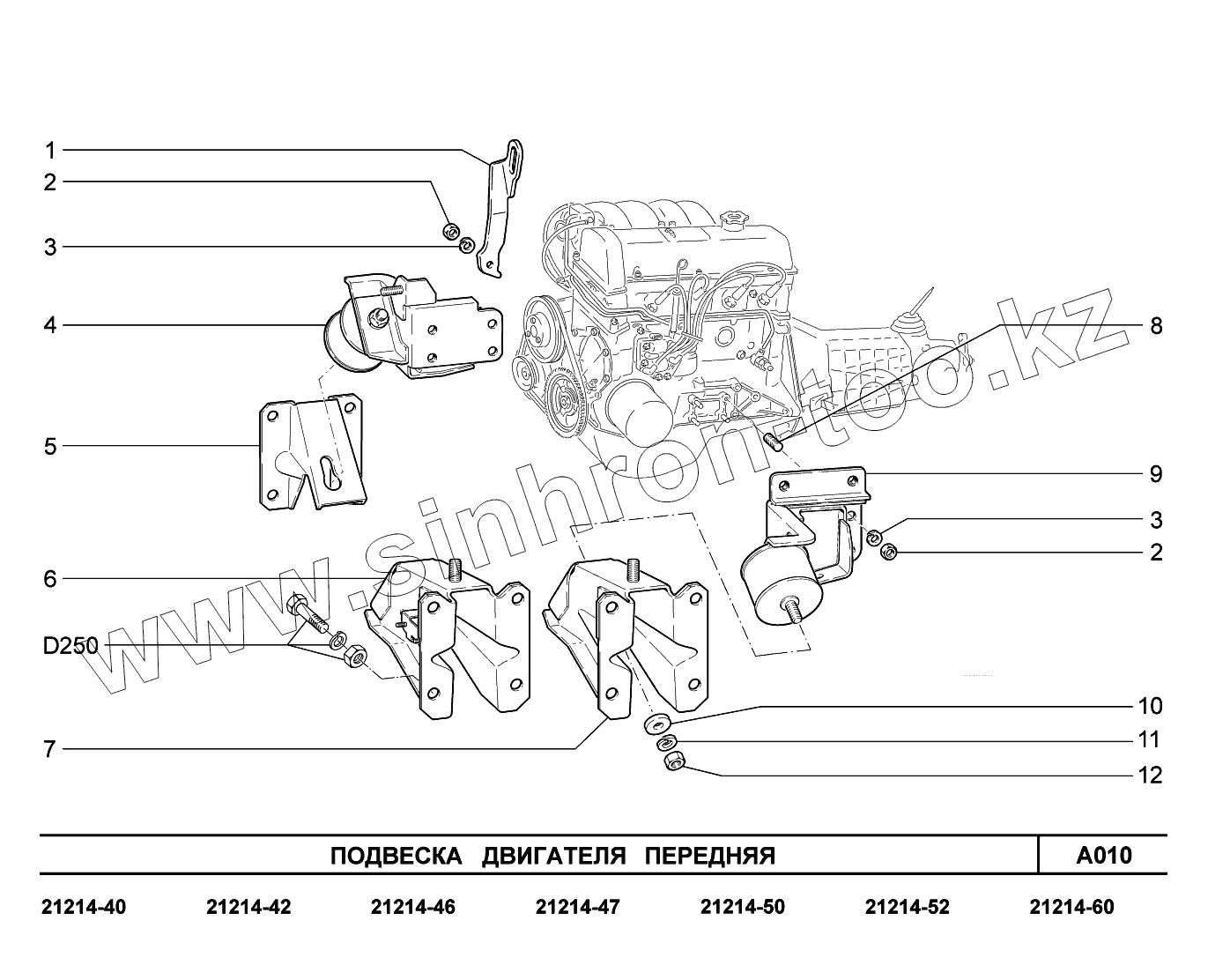 Каталог запасных частей к технике: ВАЗ LADA 4x4 Urban. A010. Подвеска двигателя передняя