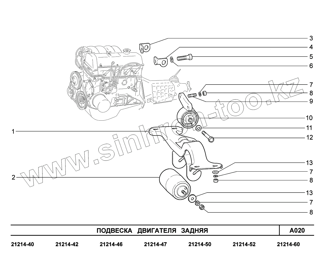 Каталог запасных частей к технике: ВАЗ LADA 4x4 Urban. A020. Подвеска двигателя задняя