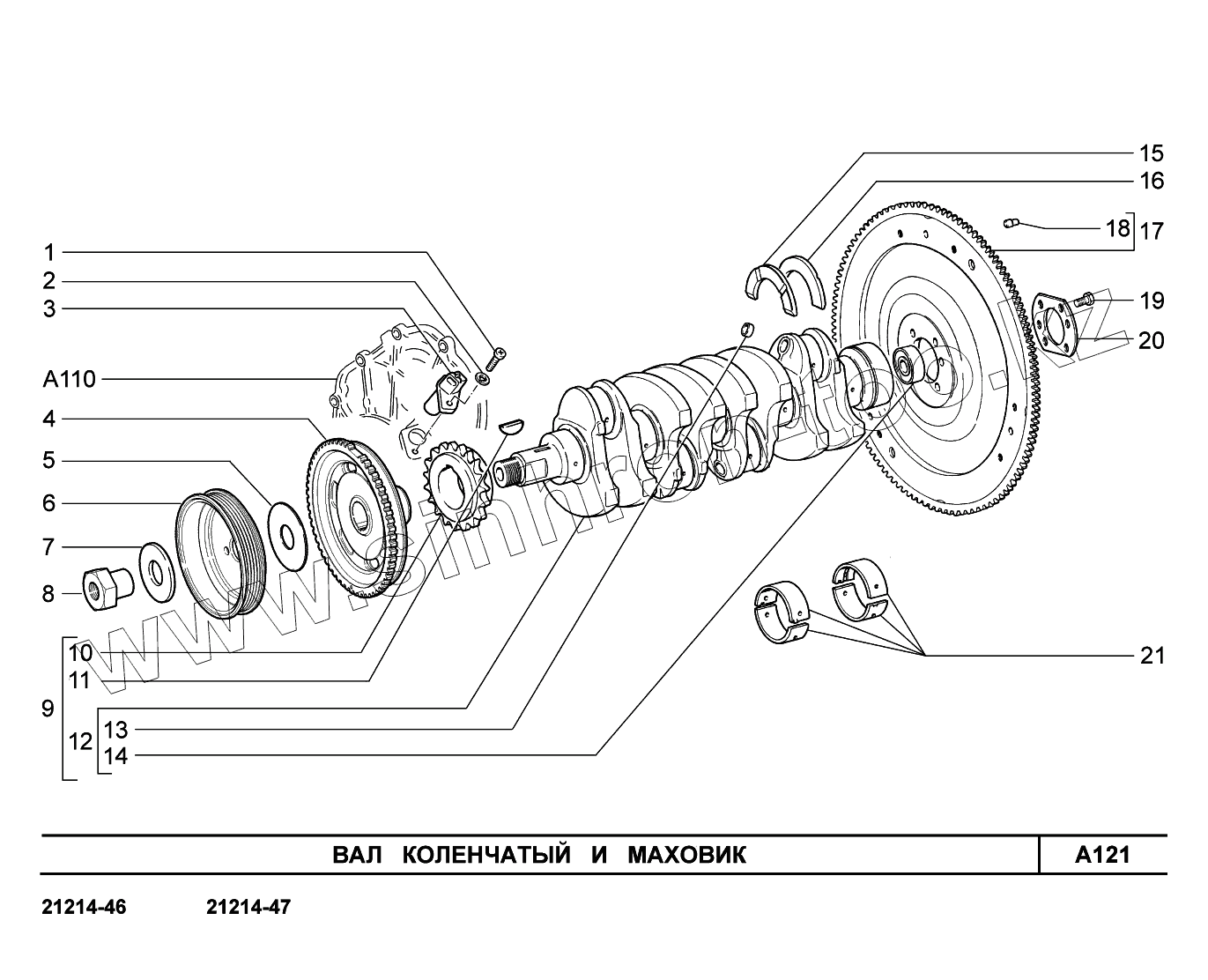 Каталог запасных частей к технике: ВАЗ LADA 4x4 Urban. A121. Вал коленчатый и маховик