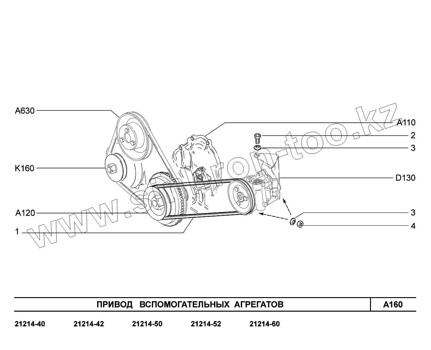 Каталог запасных частей к технике: ВАЗ LADA 4x4 Urban. A160. Привод вспомогательных агрегатов