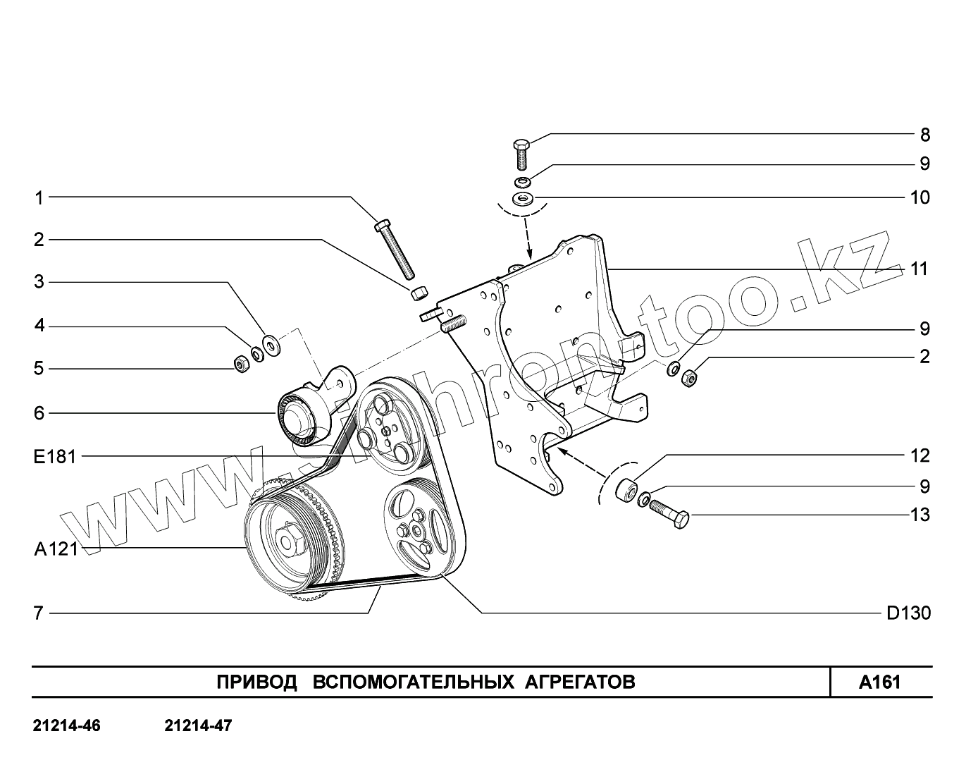 Каталог запасных частей к технике: ВАЗ LADA 4x4 Urban. A161. Привод вспомогательных агрегатов