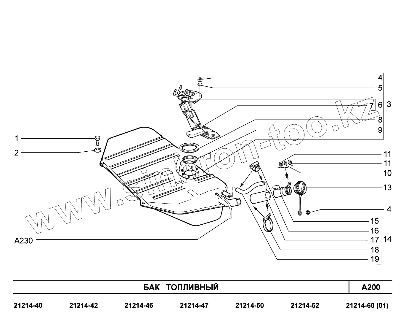 Каталог запасных частей к технике: ВАЗ LADA 4x4 Urban. A200. Бак топливный