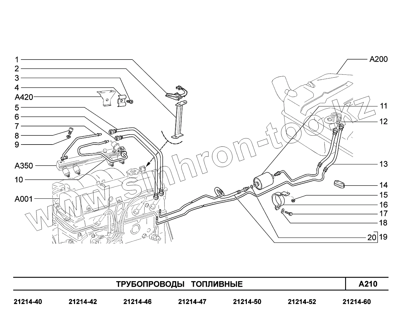 Каталог запасных частей к технике: ВАЗ LADA 4x4 Urban. A210. Трубопроводы топливные