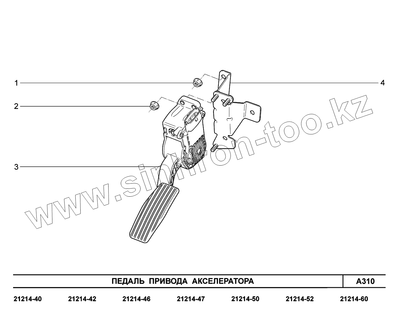 Каталог запасных частей к технике: ВАЗ LADA 4x4 Urban. A310. Педаль привода акселератора