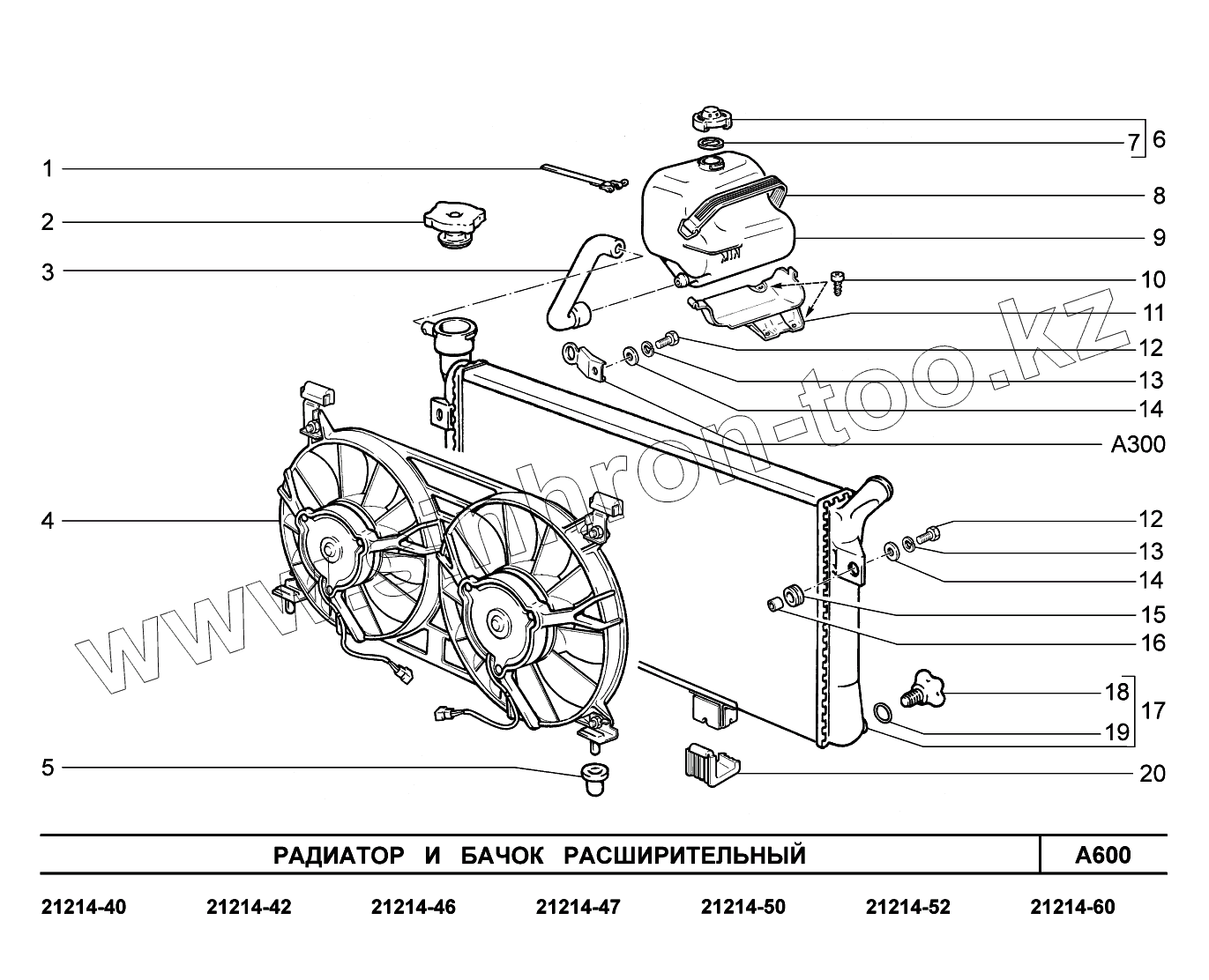 Каталог запасных частей к технике: ВАЗ LADA 4x4 Urban. A600. Радиатор и бачок расширительный