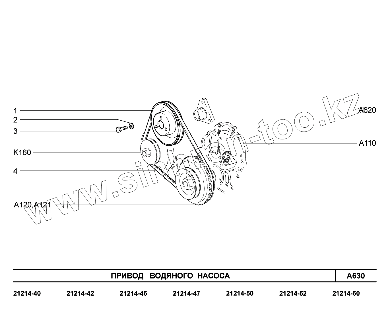 Каталог запасных частей к технике: ВАЗ LADA 4x4 Urban. A630. Привод водяного насоса
