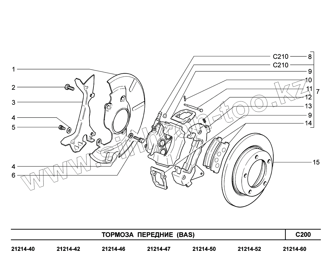 Каталог запасных частей к технике: ВАЗ LADA 4x4 Urban. C200. Тормоза передние