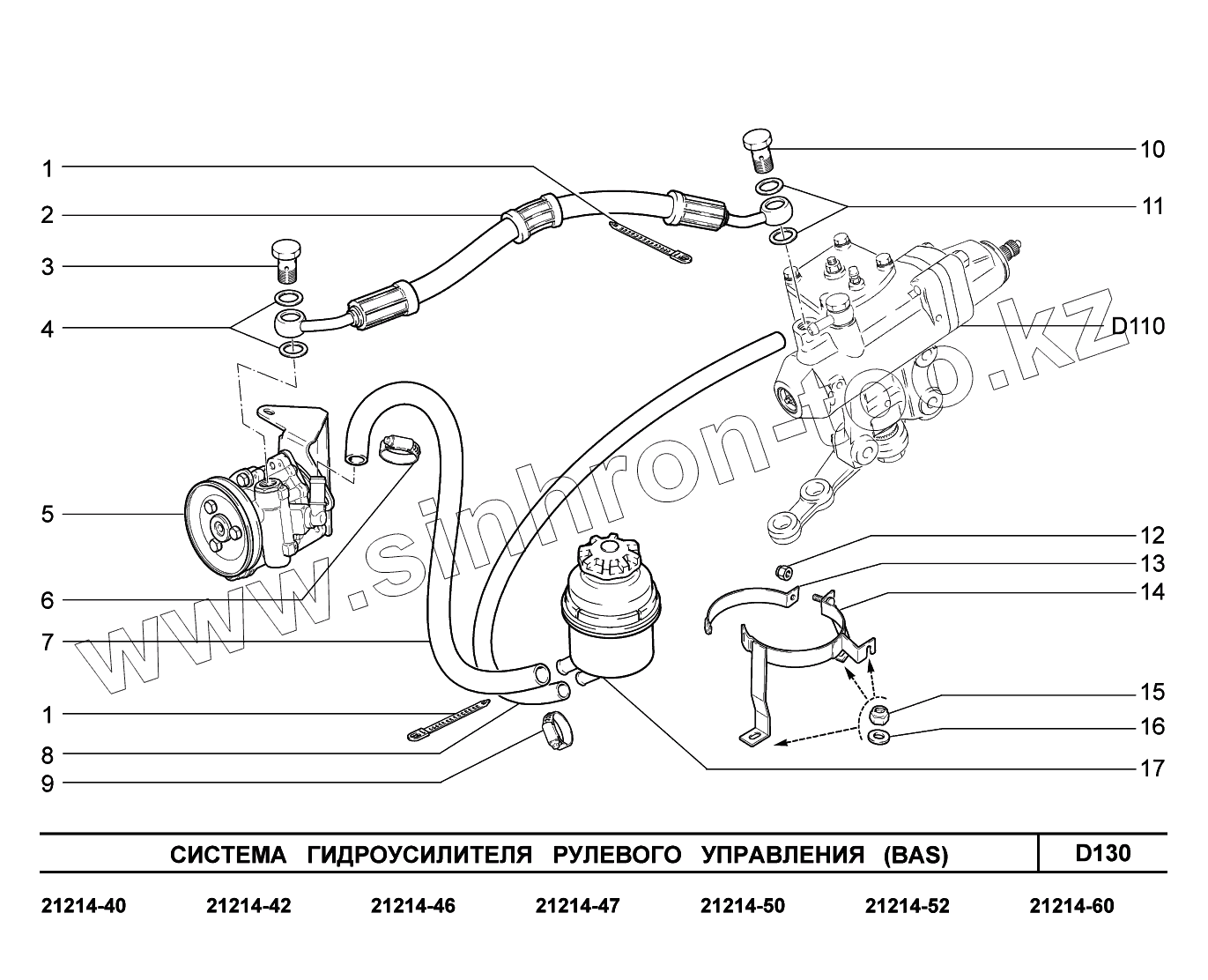 Каталог запасных частей к технике: ВАЗ LADA 4x4 Urban. D130. Система гидроусилителя рулевого управления