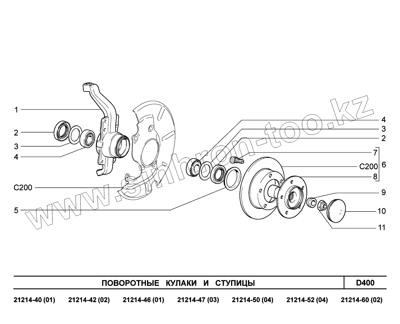 D400. Поворотные кулаки и ступицы