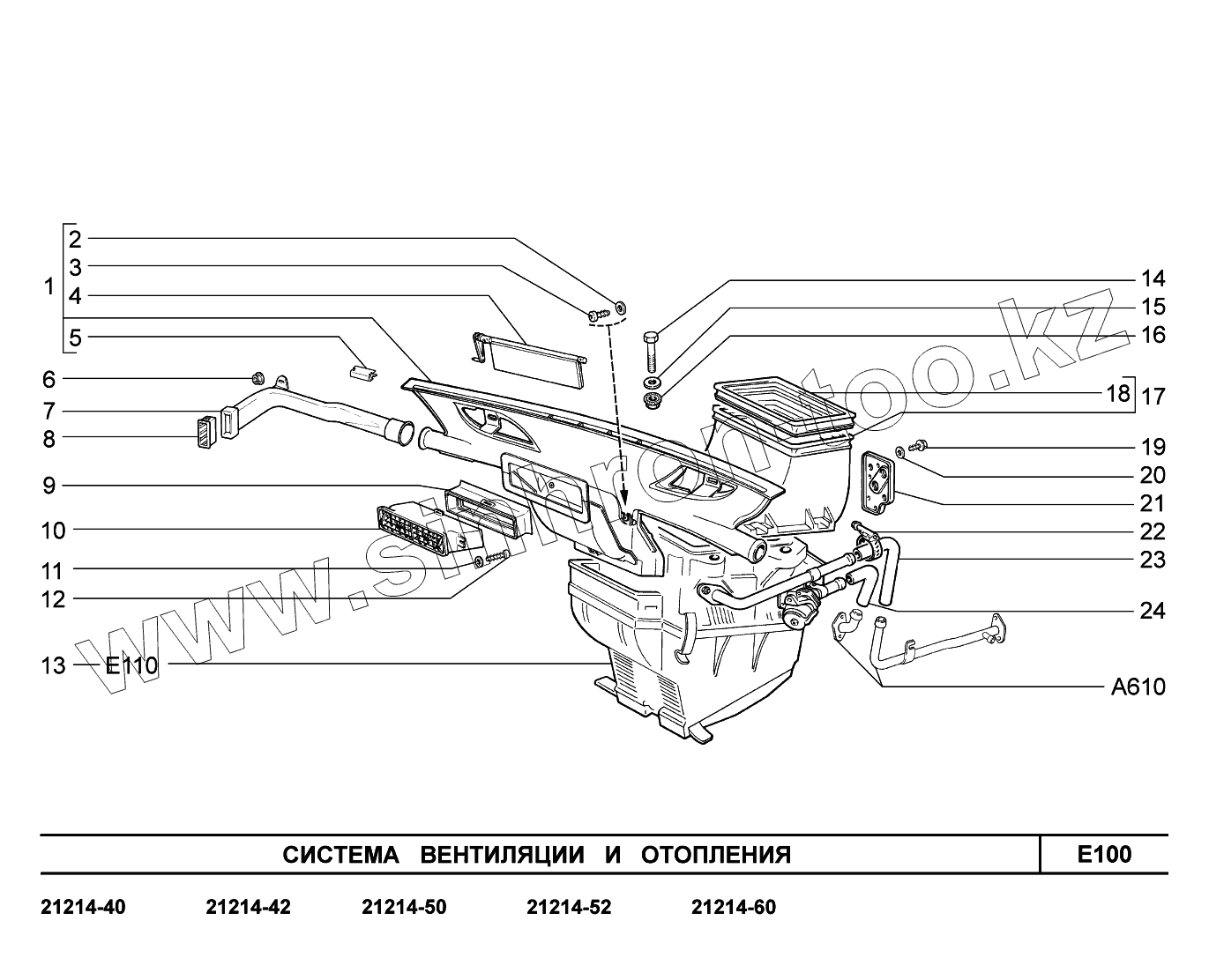 Каталог запасных частей к технике: ВАЗ LADA 4x4 Urban. E100. Система вентиляции и отопления