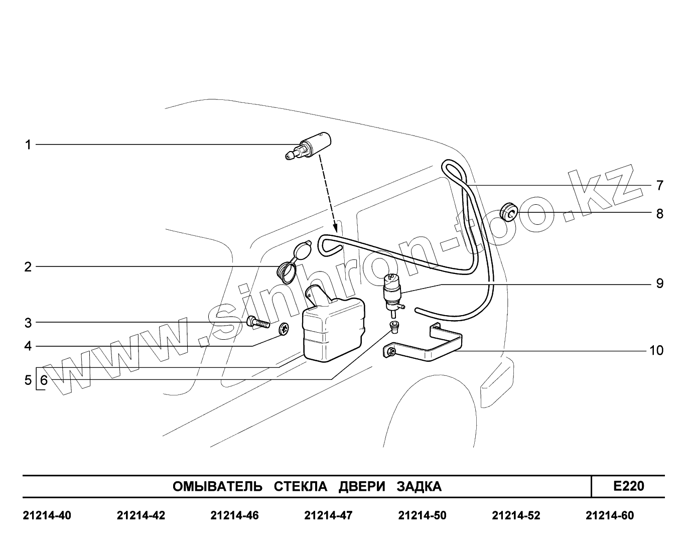 Каталог запасных частей к технике: ВАЗ LADA 4x4 Urban. E220. Омыватель стекла двери задка