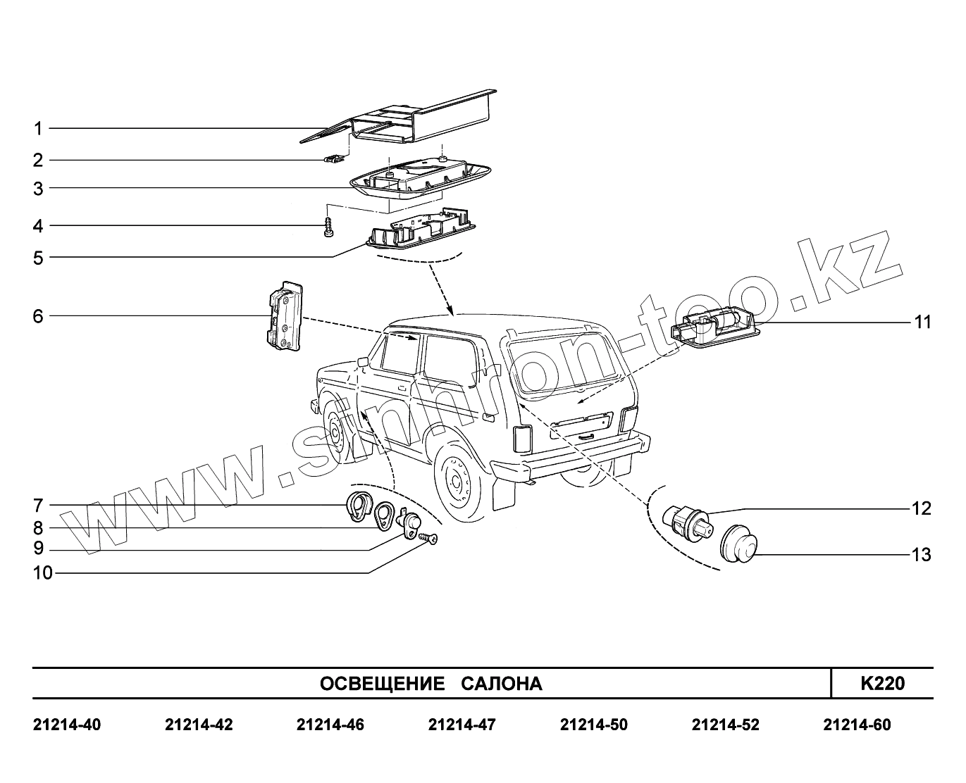 Каталог запасных частей к технике: ВАЗ LADA 4x4 Urban. K220. Освещение салона
