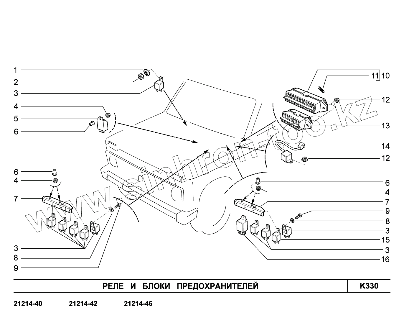 Каталог запасных частей к технике: ВАЗ LADA 4x4 Urban. K330. Реле и блоки предохранителей