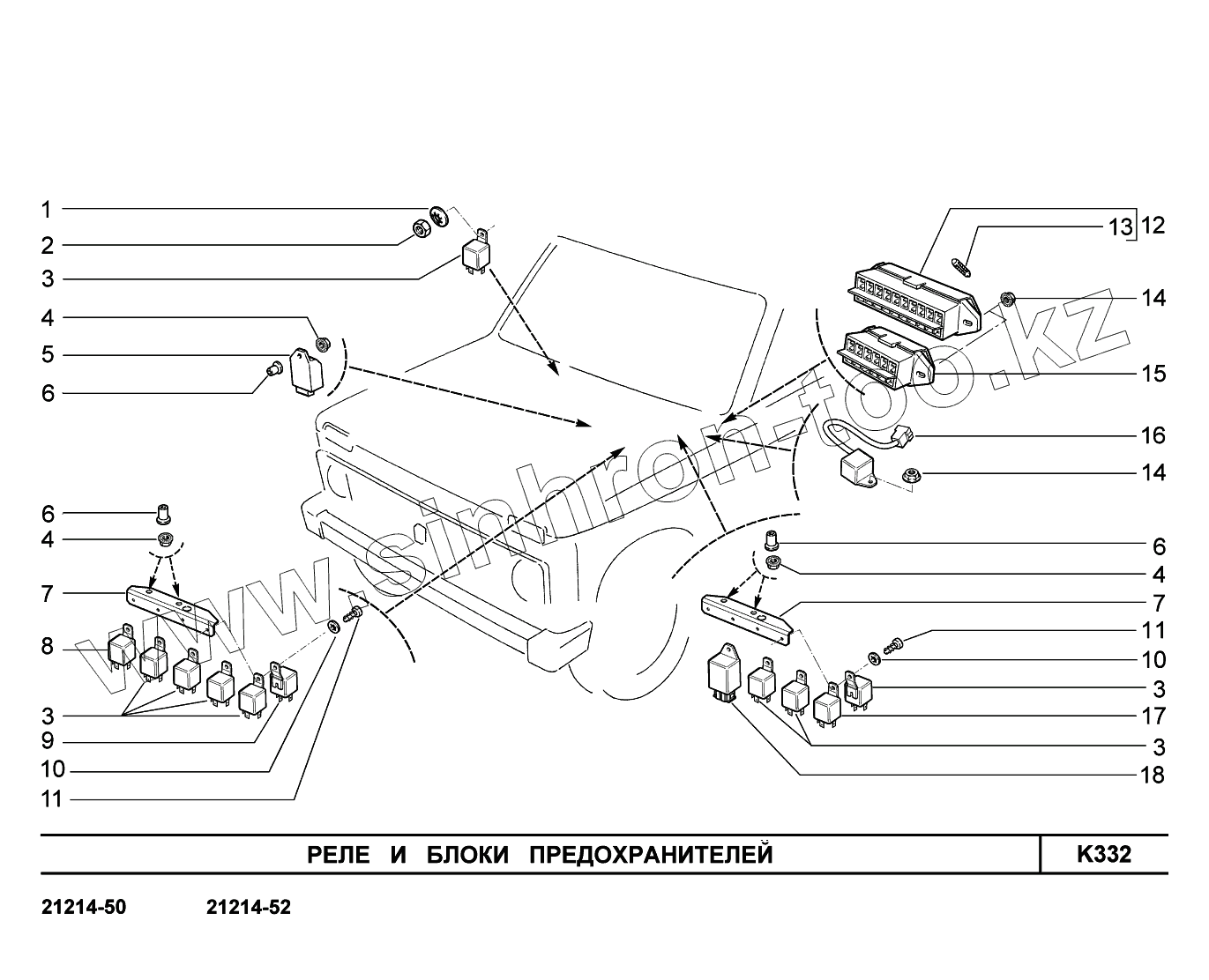 Каталог запасных частей к технике: ВАЗ LADA 4x4 Urban. K332. Реле и блоки предохранителей