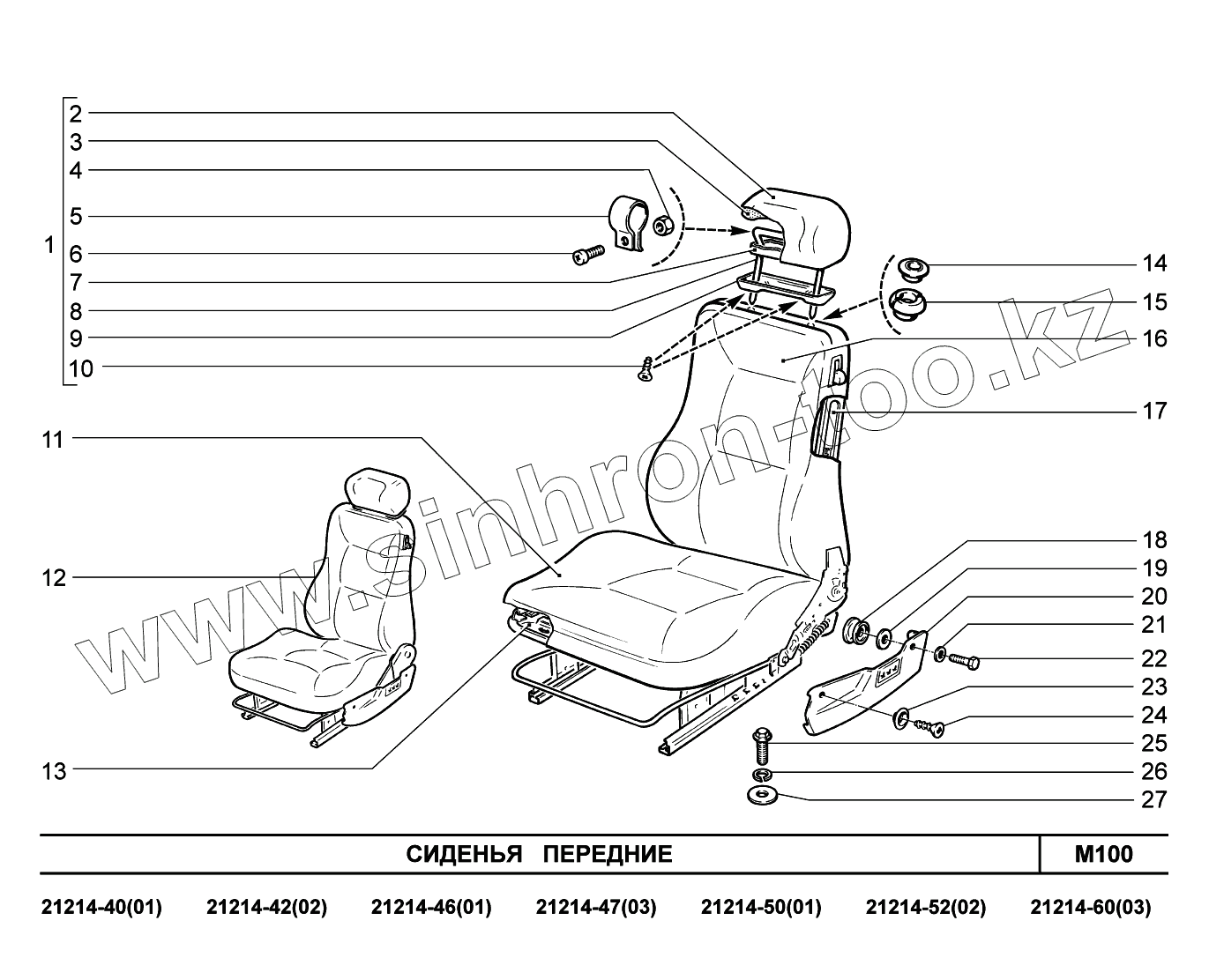 Каталог запасных частей к технике: ВАЗ LADA 4x4 Urban. M100. Сиденья передние