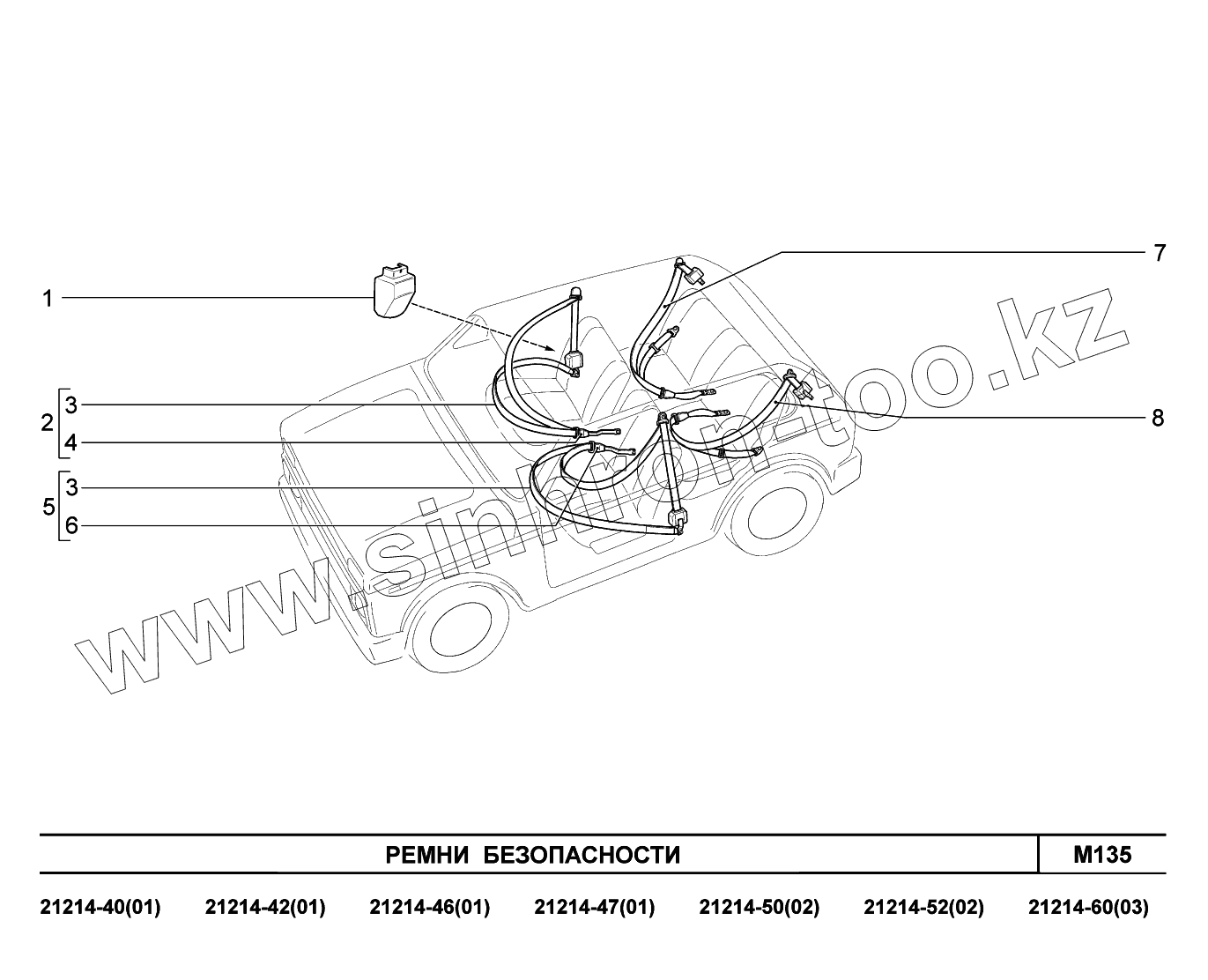 Каталог запасных частей к технике: ВАЗ LADA 4x4 Urban. M135. Ремни безопасности