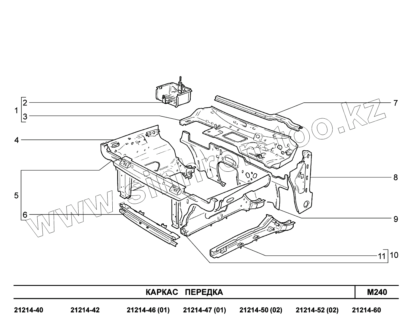 Каталог запасных частей к технике: ВАЗ LADA 4x4 Urban. M240. Каркас передка