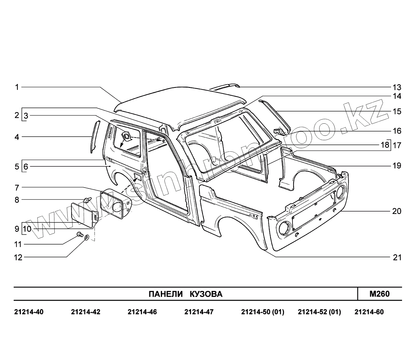 Каталог запасных частей к технике: ВАЗ LADA 4x4 Urban. M260. Панели кузова