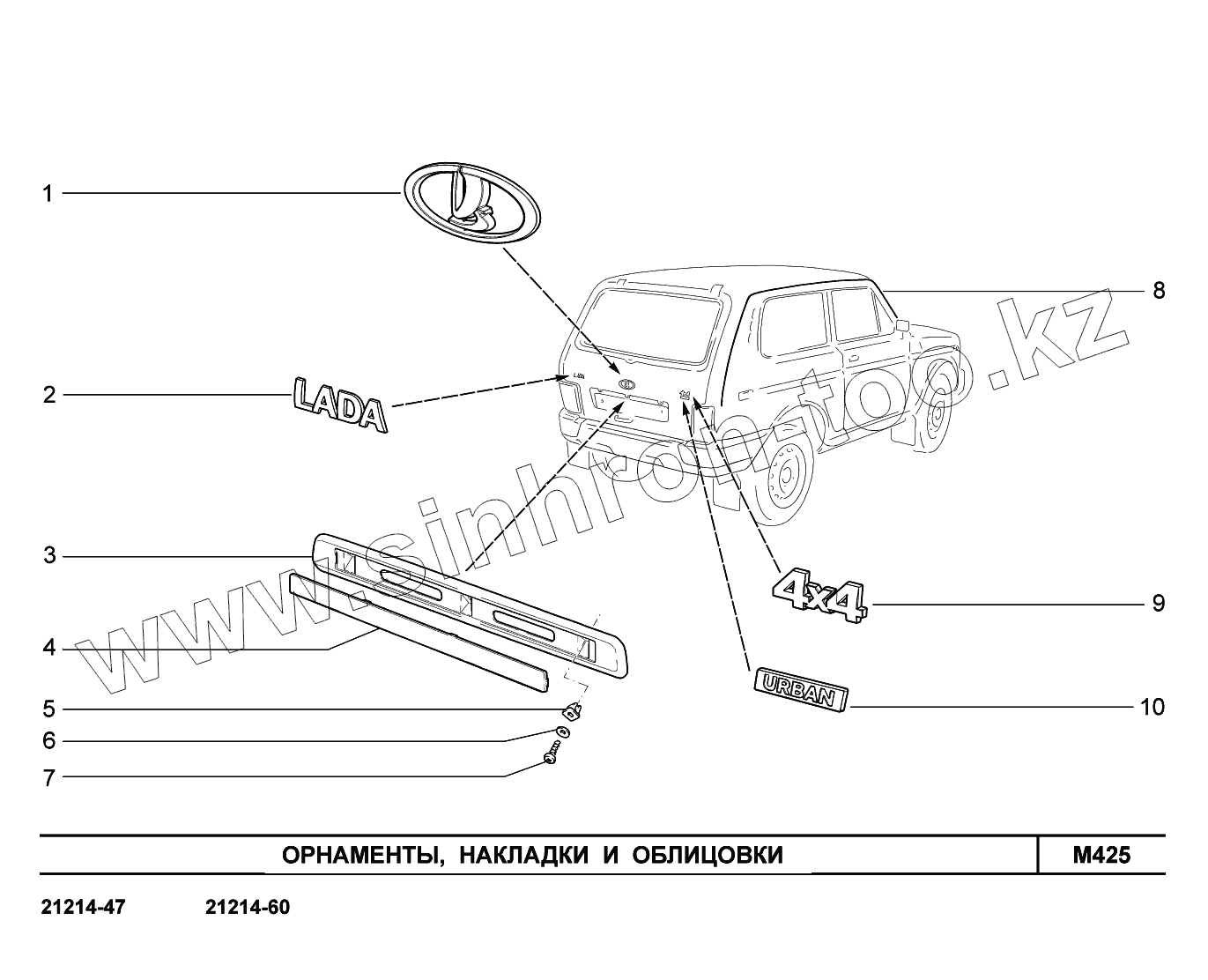 Каталог запасных частей к технике: ВАЗ LADA 4x4 Urban. M425. Орнаменты, накладки и облицовки