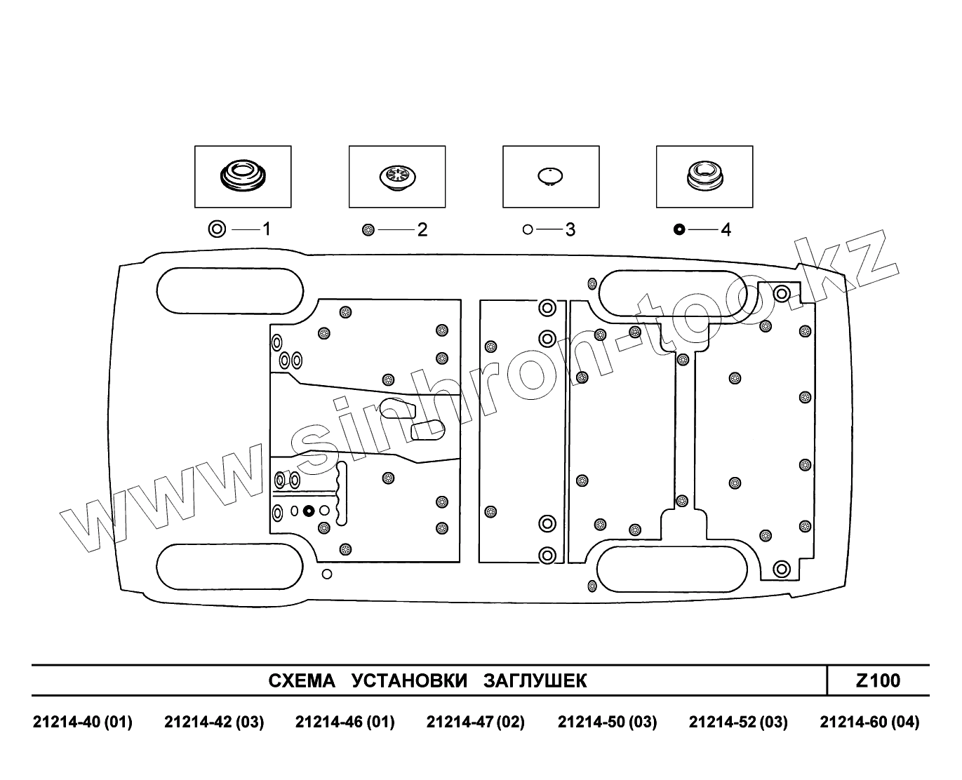 Каталог запасных частей к технике: ВАЗ LADA 4x4 Urban. Z100. Схема установки заглушек