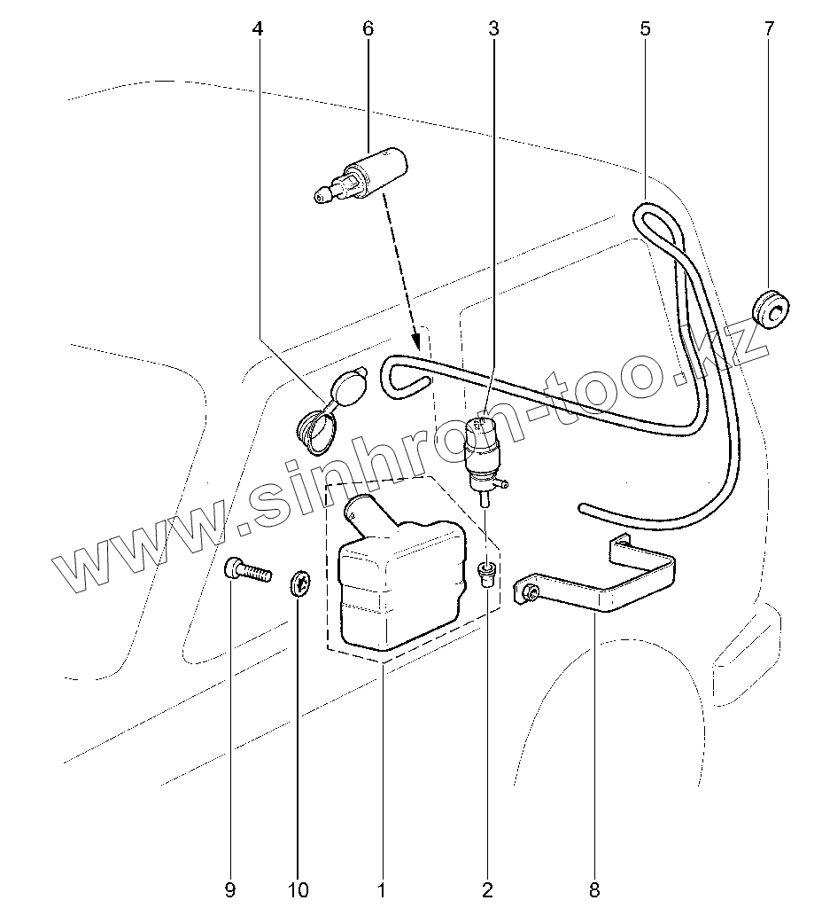 Каталог запасных частей к технике: ВАЗ LADA Bronto. 853110. Омыватель стекла двери задка