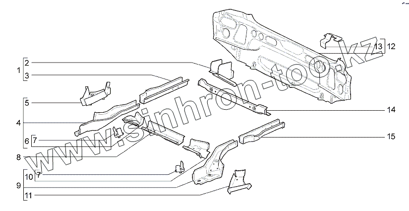 Каталог запасных частей к технике: ВАЗ LADA Granta 2190. Каркас заднего пола