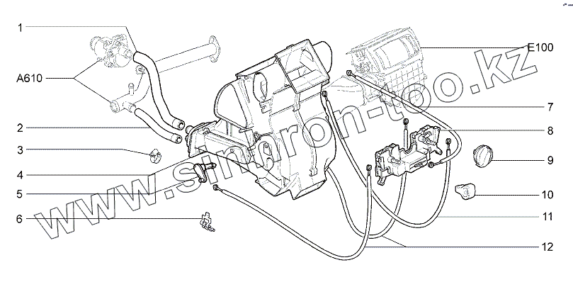 Каталог запасных частей к технике: ВАЗ LADA Granta 2190. Отопитель с управлением и шлангами
