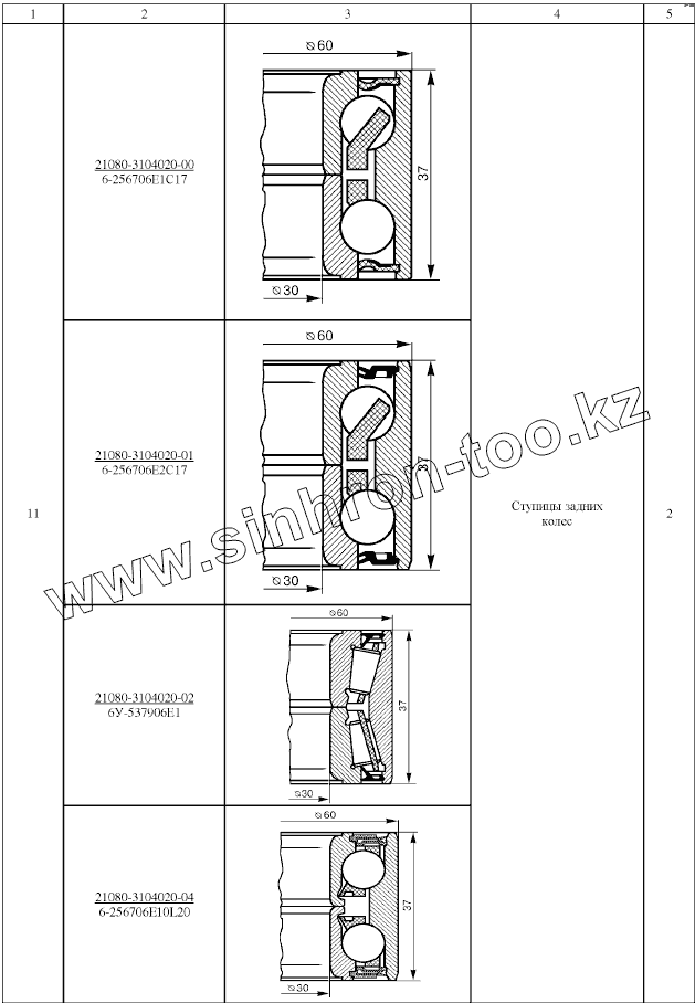 Каталог запасных частей к технике: ВАЗ LADA Granta 2190. Подшипники № 4