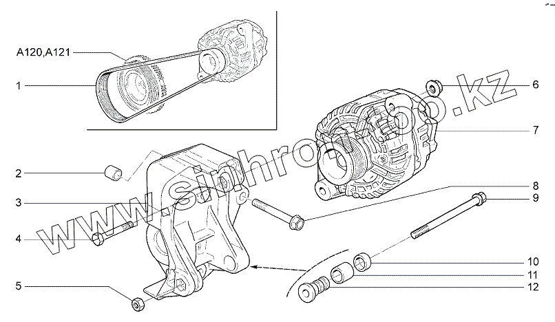 Каталог запасных частей к технике: ВАЗ LADA Granta 2190. Установка генератора