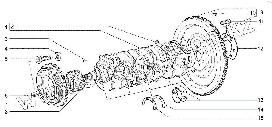 Каталог запасных частей к технике: ВАЗ LADA Granta 2190. Вал коленчатый и маховик А120