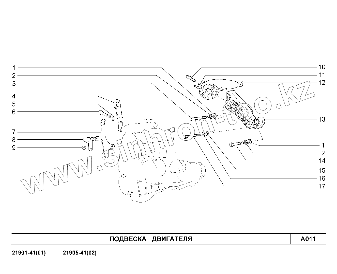 Каталог запасных частей к технике: ВАЗ LADA Granta 2190. A011. Подвеска двигателя