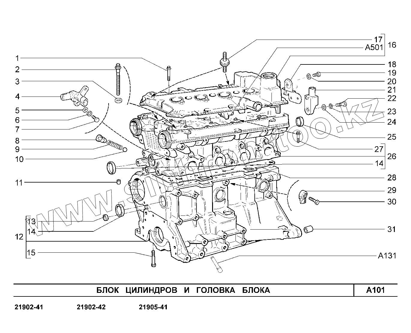 Каталог запасных частей к технике: ВАЗ LADA Granta 2190. A101. Блок цилиндров и головка блока