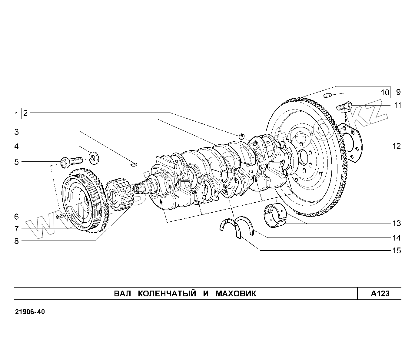 Каталог запасных частей к технике: ВАЗ LADA Granta 2190. A123. Вал коленчатый и маховик