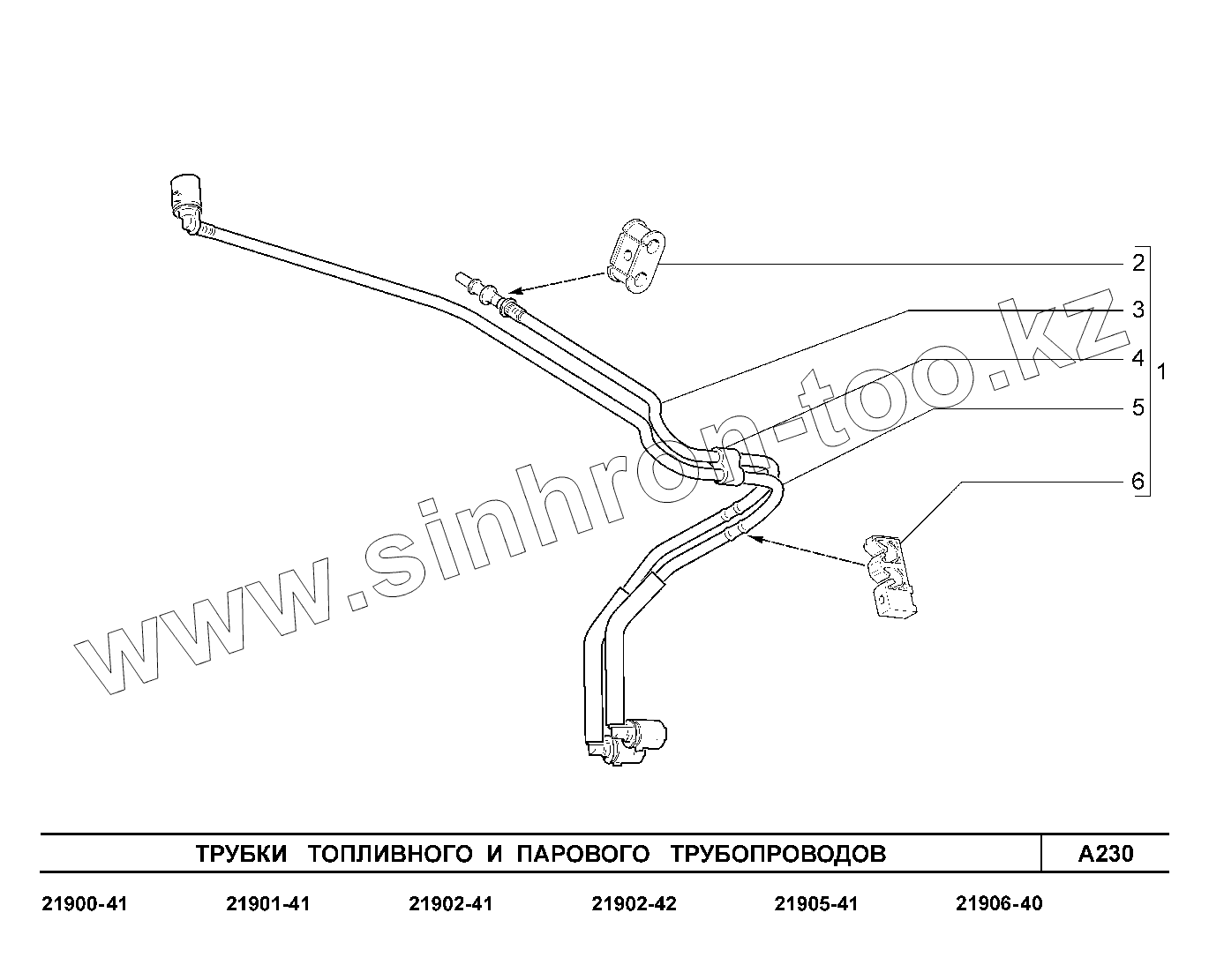 Каталог запасных частей к технике: ВАЗ LADA Granta 2190. A230. Трубки топливного и парового трубопроводов