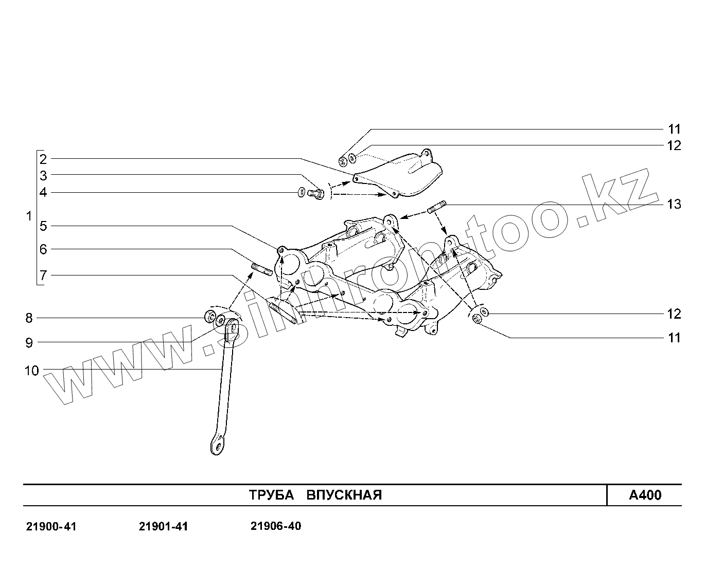 Каталог запасных частей к технике: ВАЗ LADA Granta 2190. A400. Труба впускная