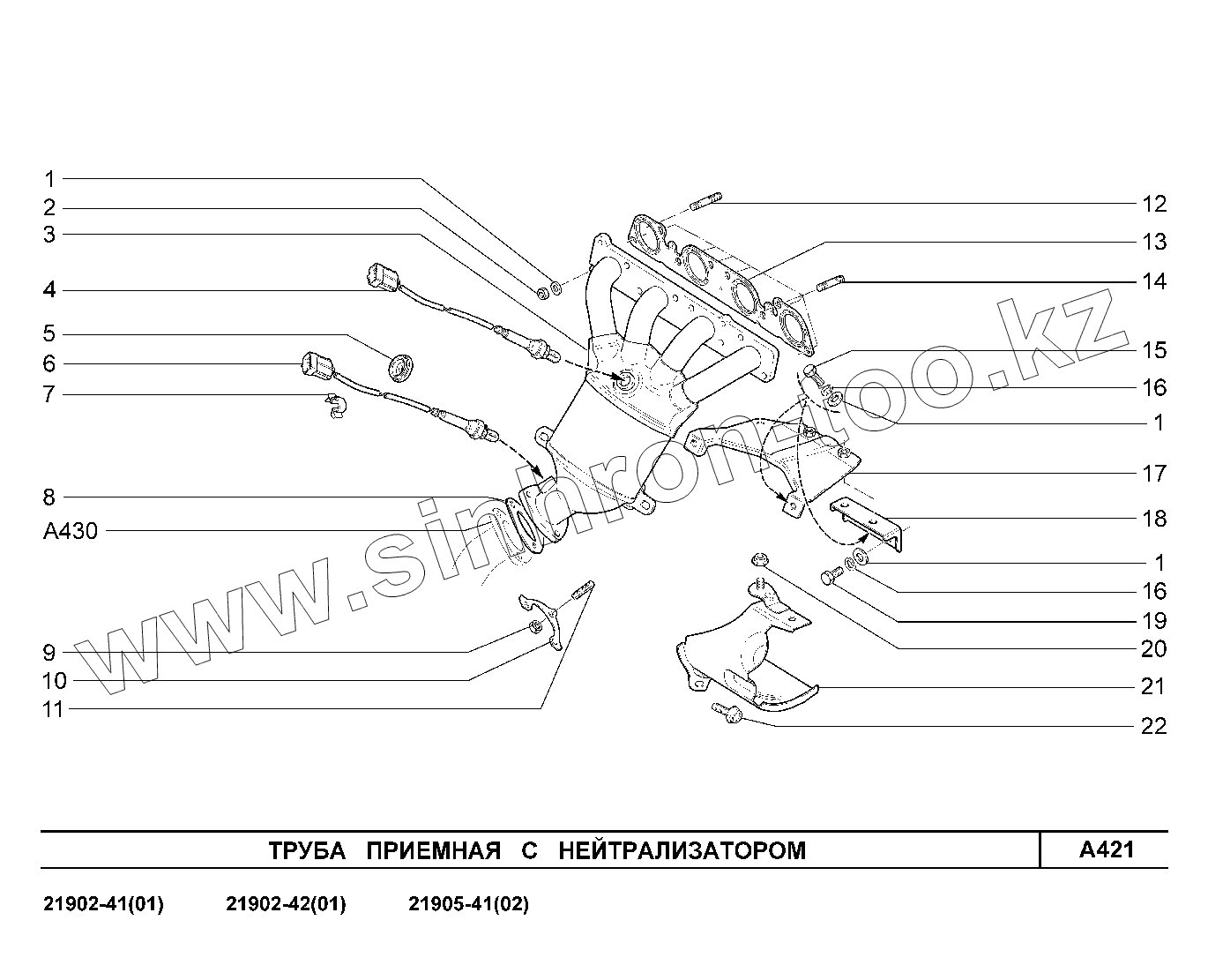 Каталог запасных частей к технике: ВАЗ LADA Granta 2190. A421. Труба приемная с нейтрализатором