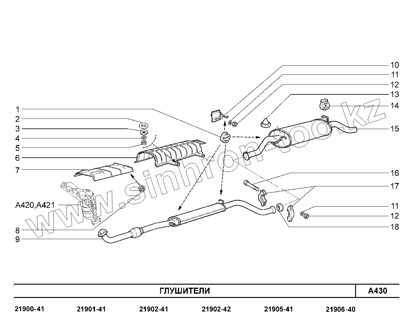 Каталог запасных частей к технике: ВАЗ LADA Granta 2190. A430. Глушители