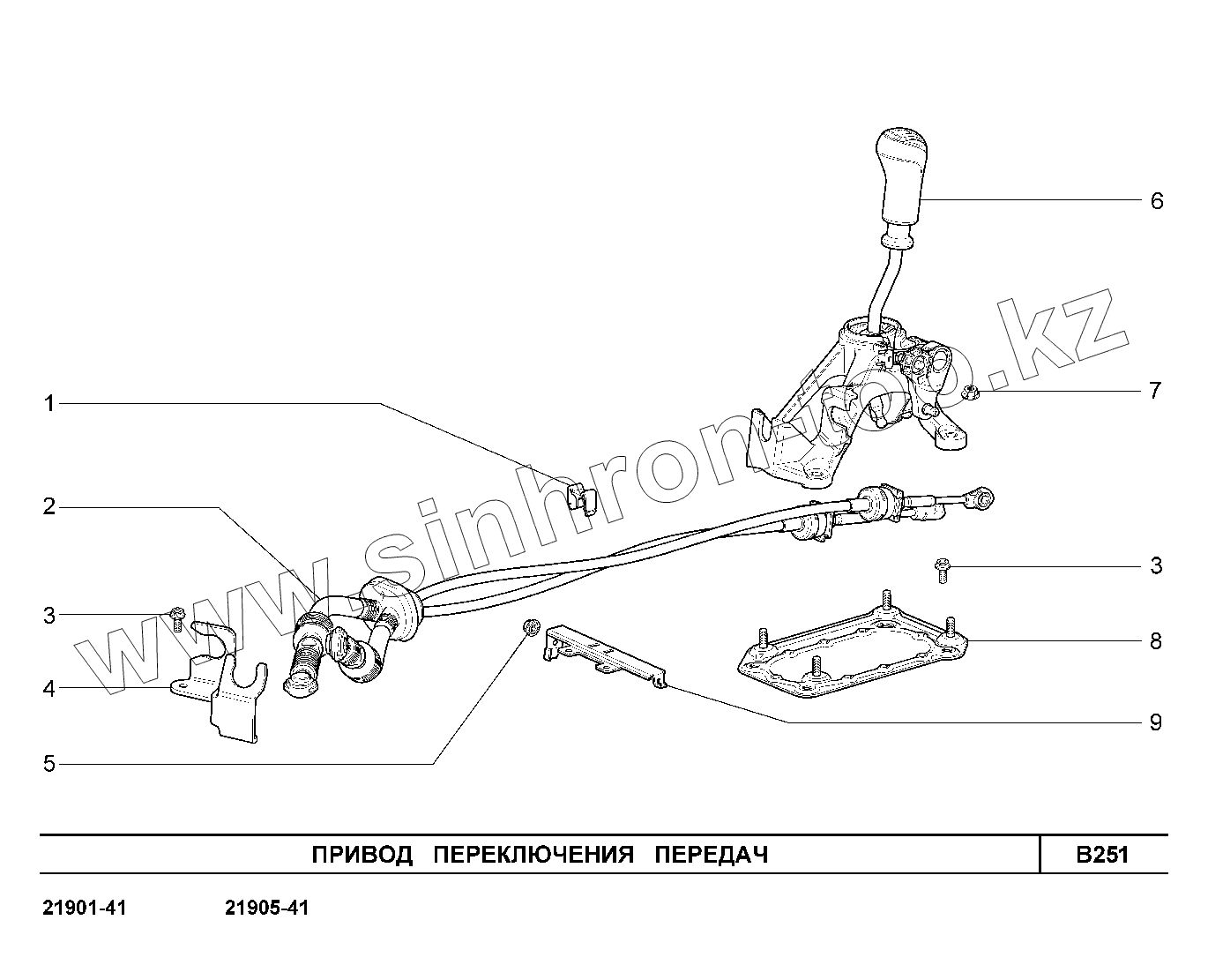 Каталог запасных частей к технике: ВАЗ LADA Granta 2190. B251. Привод переключения передач